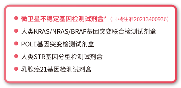 万象城AWC基因以MSI产品为中心,辐射出多癌种产线,辅助临床检测给予更准确、高效的治疗决策。MSI产品搭配人类KRAS/NRAS/BRAF基因突变检测产品可为结直肠癌患者给予靶向、免疫治疗指导。MSI产品搭配POLE基因突变检测产品将助力于为子宫内膜癌患者给予精准分子分型。